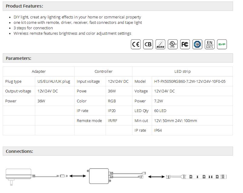 Model NO. HT-PX5050RGB60-7.2W-12/24-10F0-05